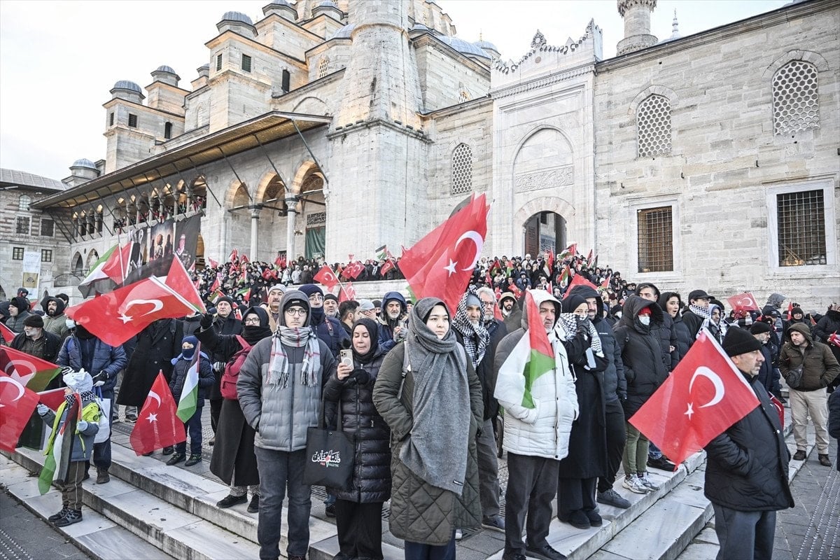 İstanbul’da “Sinmiyoruz, susmuyoruz Filistin’i unutmuyoruz” etkinliği çerçevesinde Sultanahmet, Ayasofya-i Kebir Cami-i Şerifi, Fatih Cami, Eminönü Yeni Cami, Taksim Cami gibi noktalarda sabah namazı öncesi vatandaşlar araya geldi.