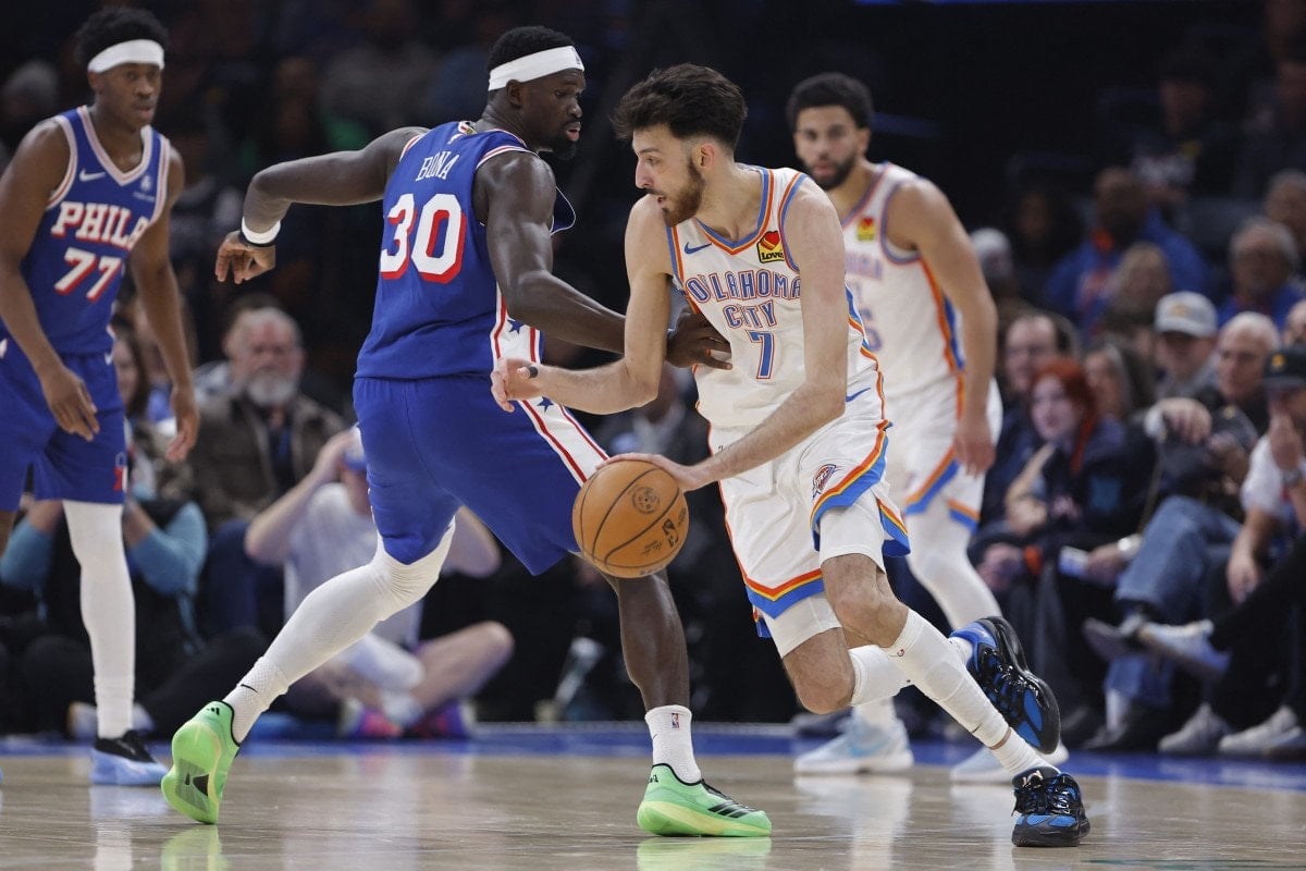 Ayak bileğindeki sakatlık nedeniyle Joel Embiid’in oynamadığı 76ers’ın 23 top kaybından Thunder, 31 sayı üretti.