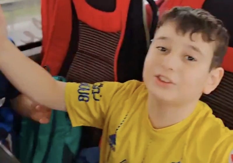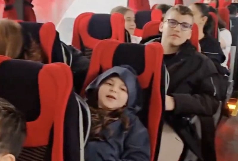 Görüntülerde otobüste oturan çocukların coşkuyla hep bir ağızdan ilahi söyledikleri anlar yer aldı.