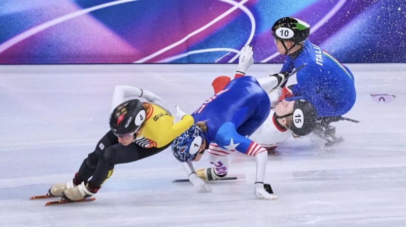 O anlarda yere düşen Sellier’in yüzüne bir başka yarışmacı olan Amerikalı rakibi Kristen Santos-Griswold’un paten bıçağı geldi.