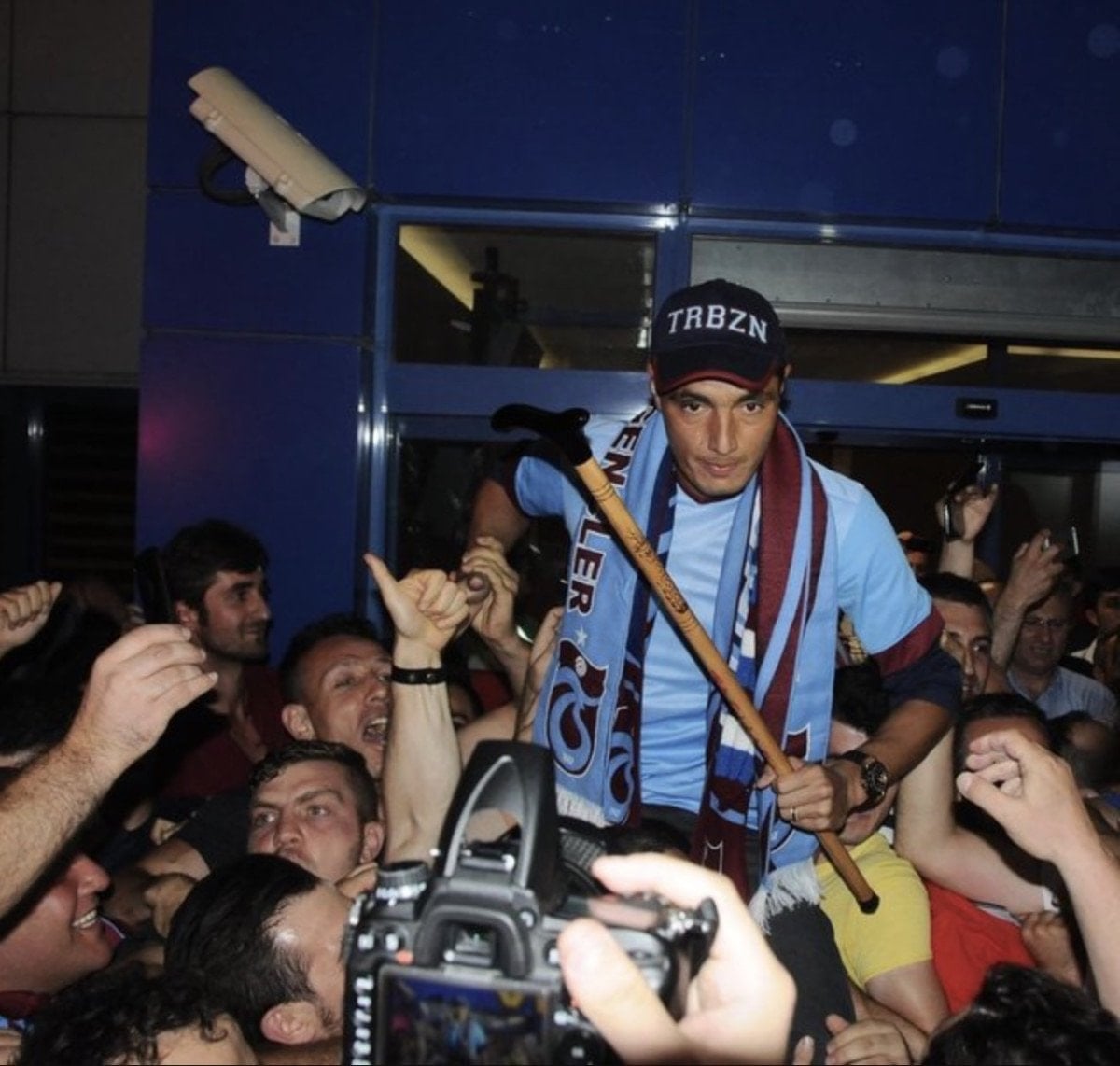Trabzonspor’a transfer olduğu ilk gün bastonla karşılanan ünlü golcü, yıllar sonra yeniden Trabzon’a ayak bastığında da aynı şekilde bastonla karşılandı.