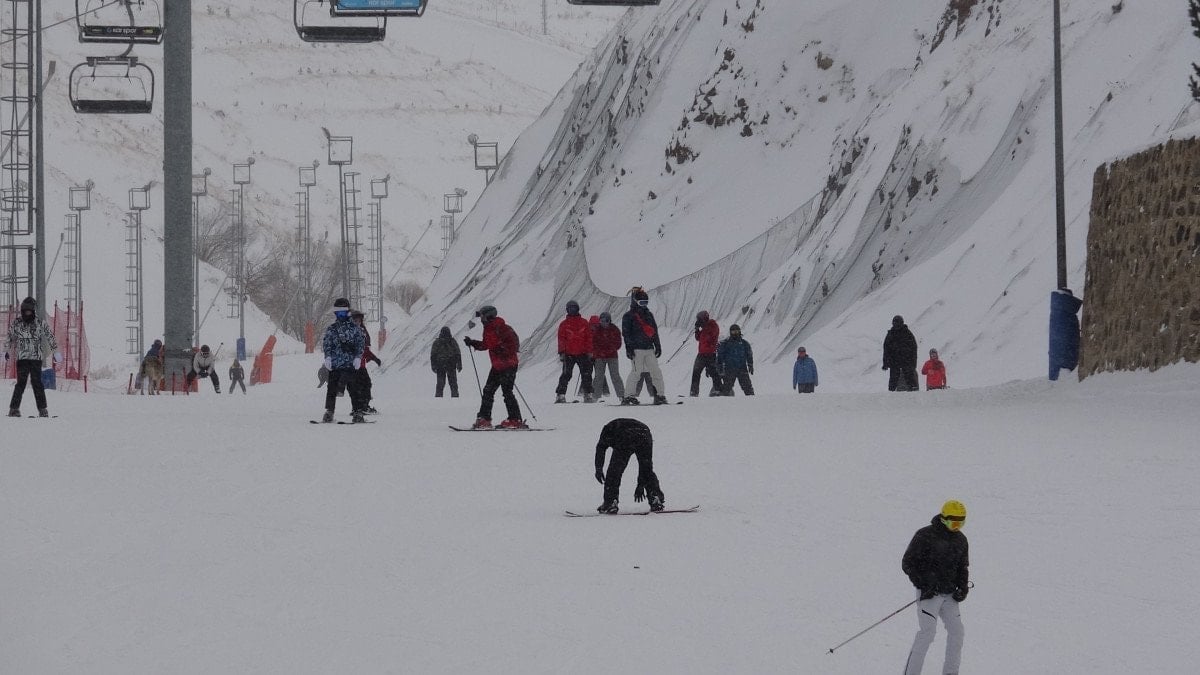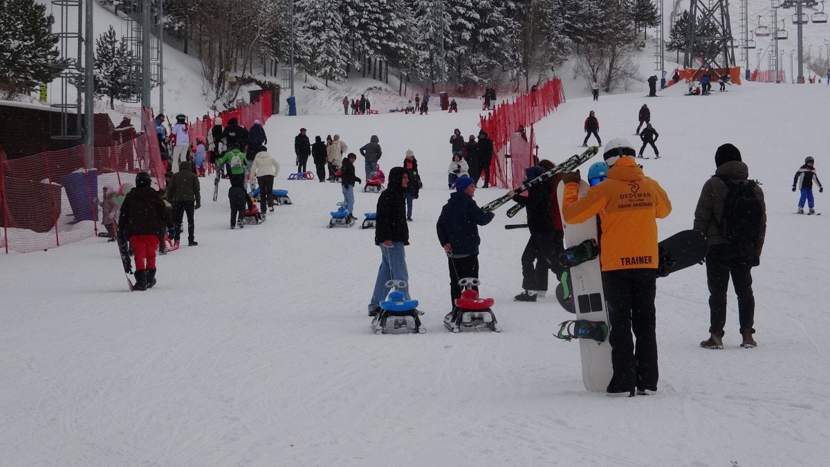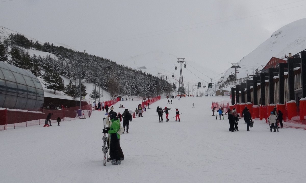 Öğrenciler de okulların tatile girmesiyle birlikte Palandöken’e akın ederken, düzenlenen kayak kursları ilgi görüyor.