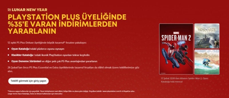 Yapılan indirimle birlikte 12 aylık PS Plus Deluxe aboneliğinin fiyatı 4 bin 266 TL’den 2 bin 772,90 TL’ye düşerek yüzde 35 oranında tasarruf sağladı.