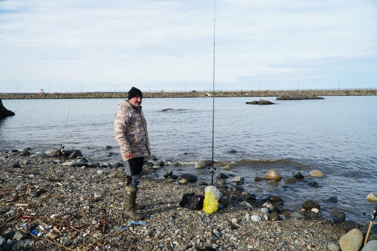 Deniz kenarına balık tutmaya gelen Muhammet Babuç, “Arkadaşlardan bir haber aldım, ‘Bismillah’ diyerek attığımız zaman bir tane somon balığı yakaladık, çok şükür bereketli geldi.
