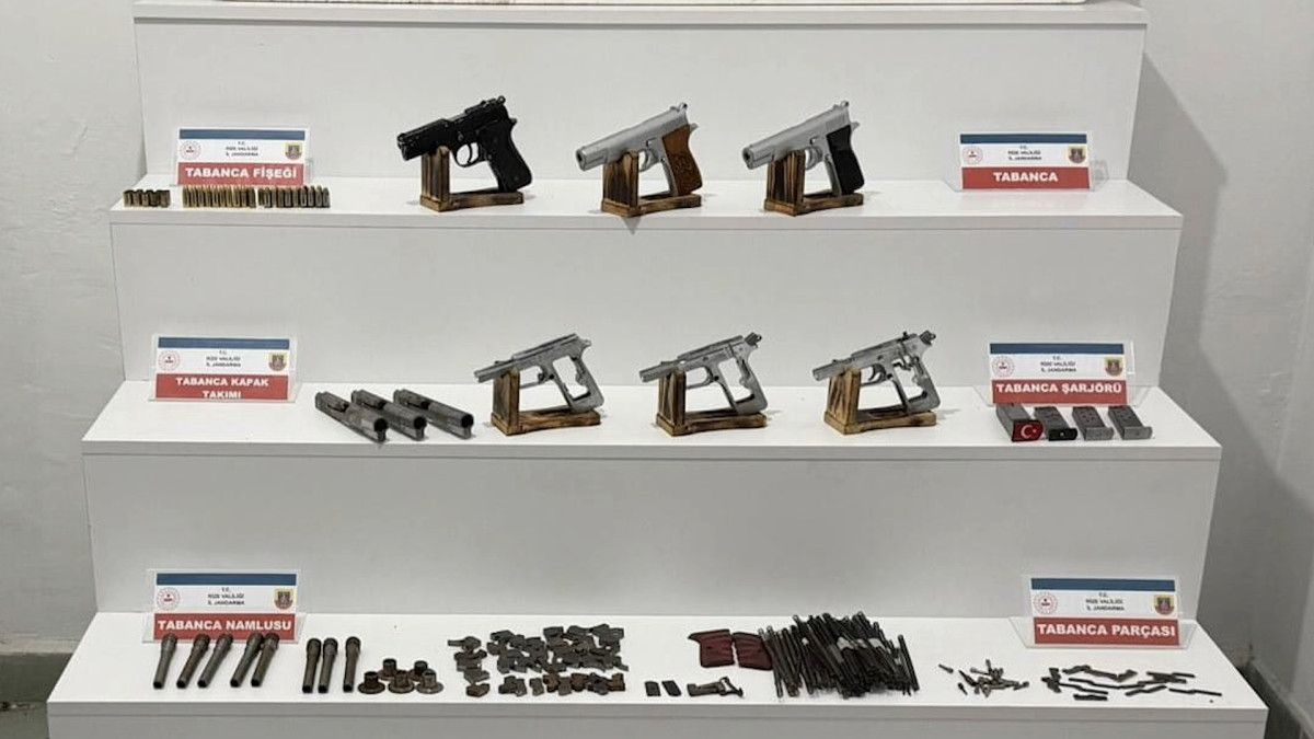 Yapılan aramalarda 3 adet tabanca, 3 tabanca gövdesi, 3 tabanca üst kapağı, 8 tabanca namlusu ve 4 şarjör ele geçirildi. Ayrıca çok sayıda tabanca yayı, tetik mekanizması parçaları, horoz, 19 iğne, namlu yüzüğü, yan tutucu parçalar ve boş kovanlar bulundu.