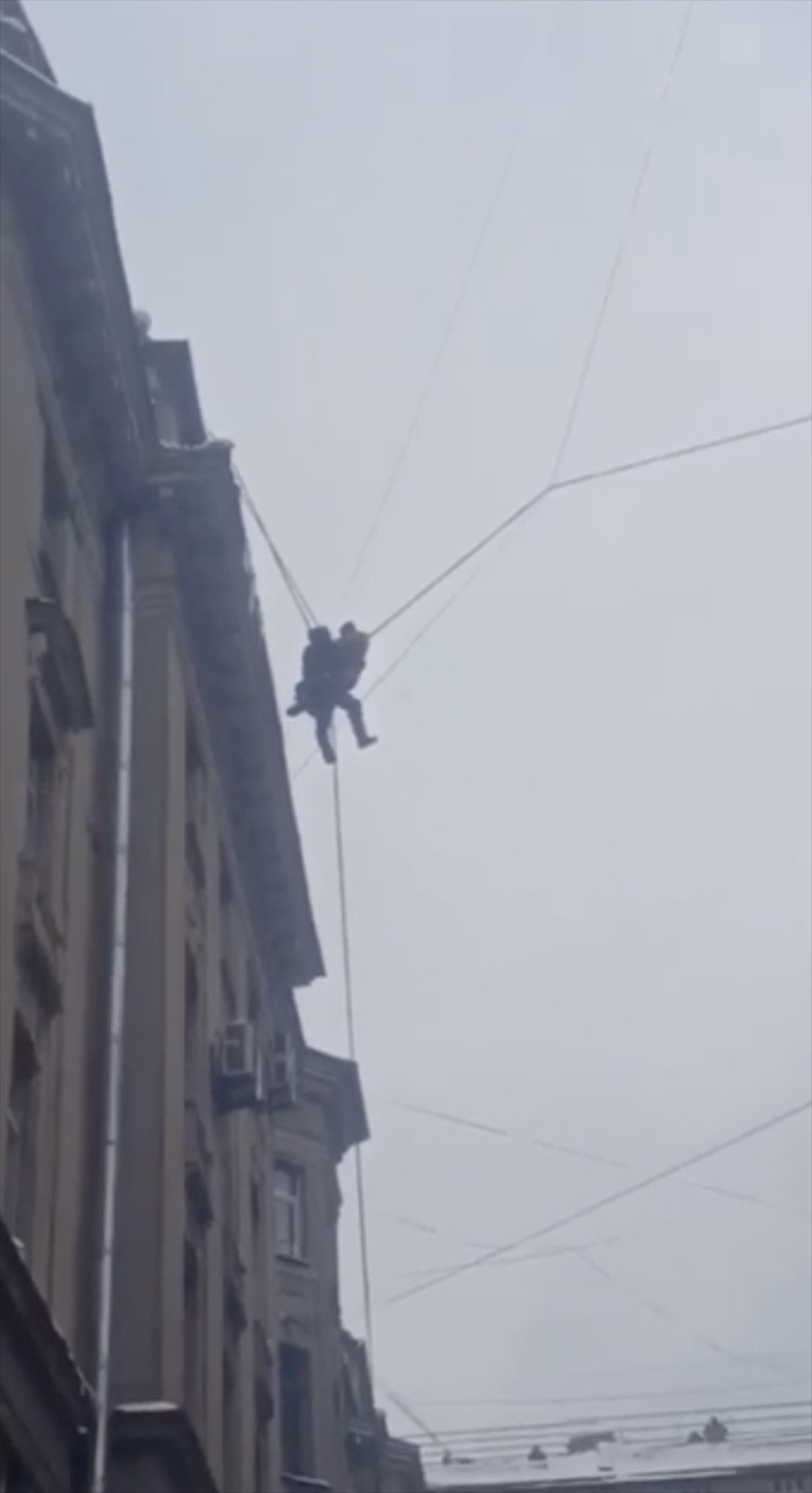 Rusya’da çatıdan düşen görevli son anda kurtuldu
