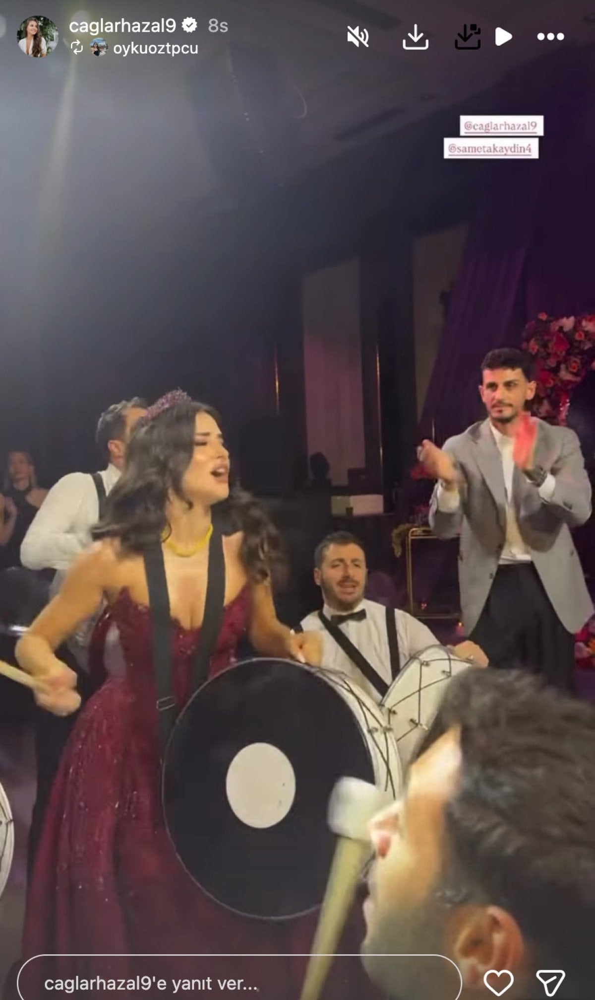 Gönül Dağı dizisinde canlandırdığı Asuman karakteriyle tanınan Hazal Çağlar, davul çalıp gönlünce eğlendi. Hazal Çağlar, kına gecesinden anları sosyal medya hesabından takipçileriyle paylaştı. Oyuncunun özel günündeki iddialı kıyafeti de hayranlarından tam not aldı.
