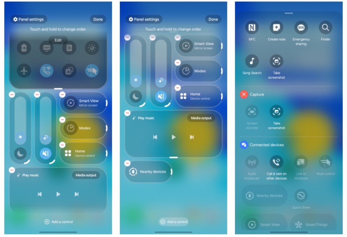 One UI 8.5 ile gelen bölünmüş Hızlı Panel, kullanıcılara düğme ve kaydırıcı düzeninde çok daha fazla kontrol ve özelleştirme imkanı tanıyor.