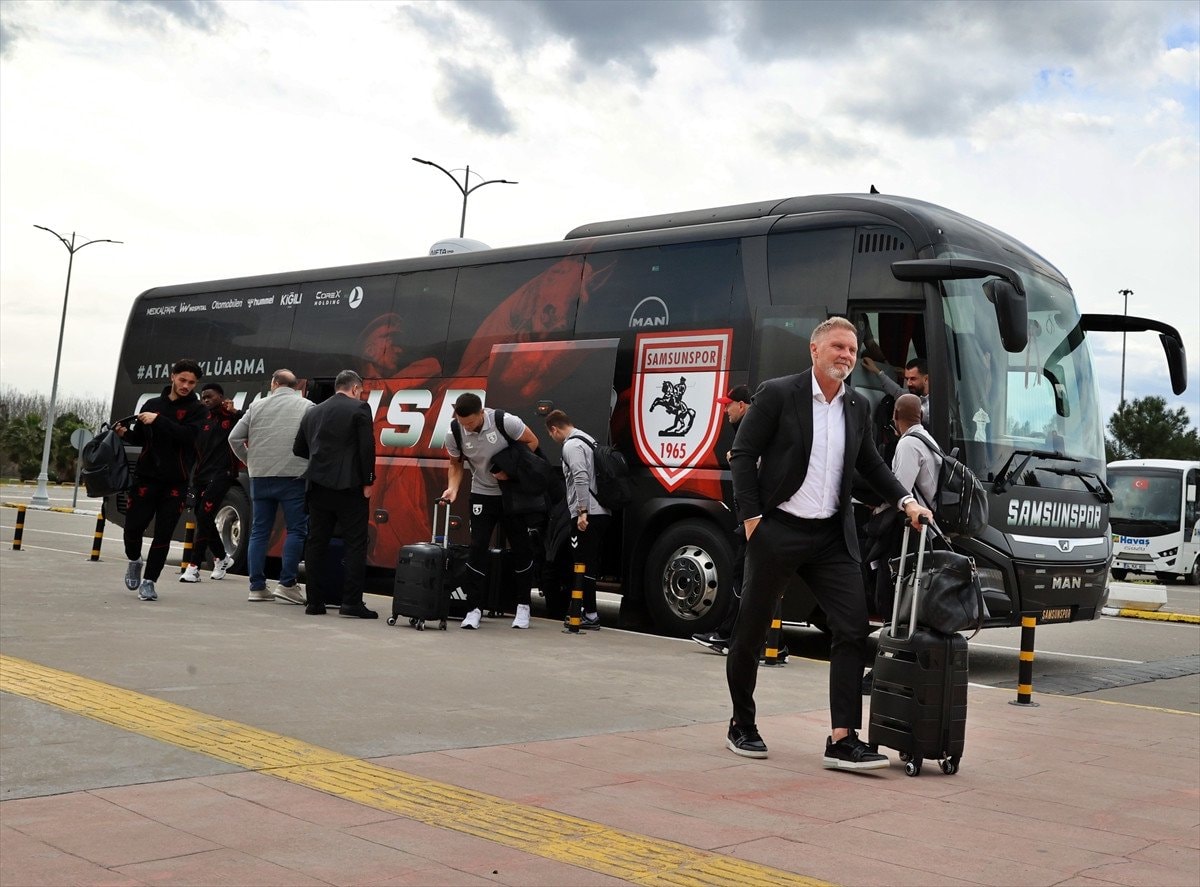 Nuri Asan Tesisleri’nden ayrılan kırmızı-beyazlı ekip, Samsun-Çarşamba Havalimanı’ndan özel uçakla Kuzey Makedonya’nın başkenti Üsküp’e hareket etti.