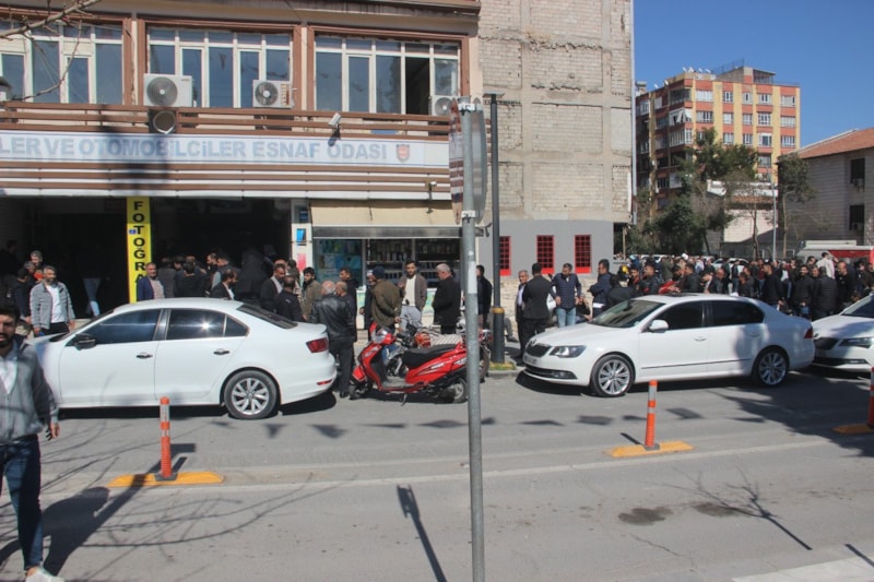 Fahiş ceza nedeniyle bir an önce işlemini yapmak isteyen yüzlerce kişi, Şanlıurfa Şoförler ve Otomobilciler Esnaf Odası önünde uzun kuyruk oluşturdu.