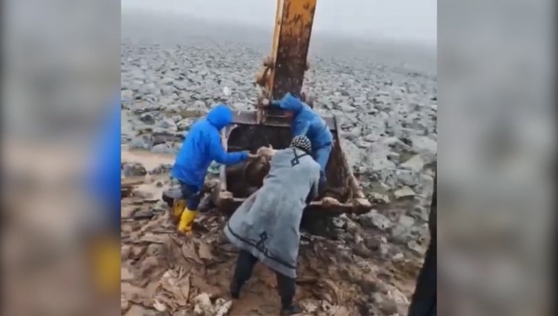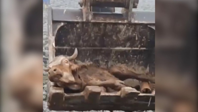 Kendi imkanlarıyla hayvanı kurtaramayan mahalleli, durumu belediye ekiplerine bildirdi. Kısa sürede olay yerine ulaşan ekipler, paletli kepçeyle yürüttükleri çalışma sonucu ineği bulunduğu yerden çıkararak güvenli alana ulaştırdı.