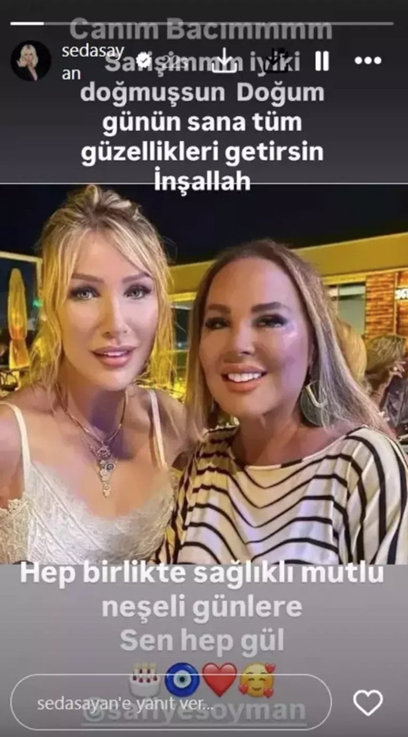 Seda Sayan, sosyal medya hesabından birlikte çekilmiş karelerini paylaşarak Safiye Soyman’ın yeni yaşını duygusal sözlerle kutladı. Ünlü sanatçı paylaşımına, “Canım bacım, Safişim… İyi ki doğmuşsun. Doğum günün sana tüm güzellikleri getirsin inşallah. Hep birlikte sağlıklı, mutlu, neşeli günlere… Sen hep gül.” notunu düştü.