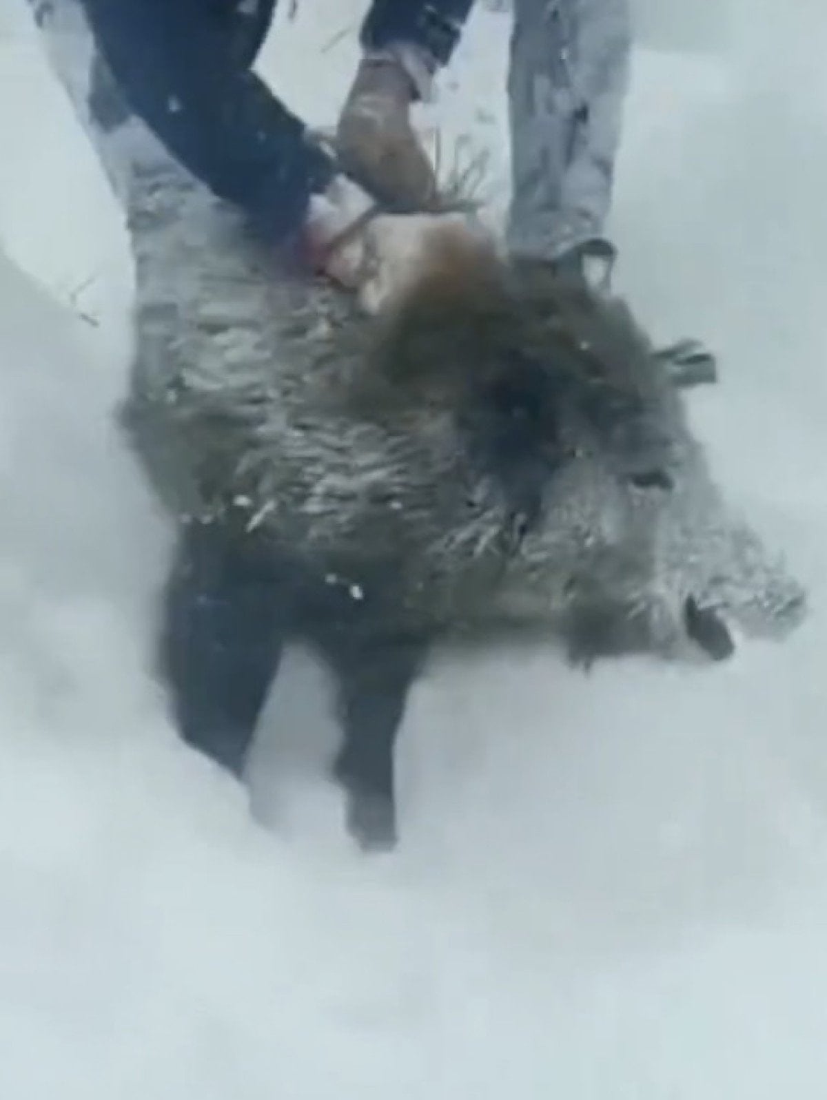 Soğukkanlı tavırlarıyla dikkat çeken vatandaş, kısa süreli bir kovalamacanın ardından sürüden ayrılan bir domuzu elleriyle yakalamayı başardı.