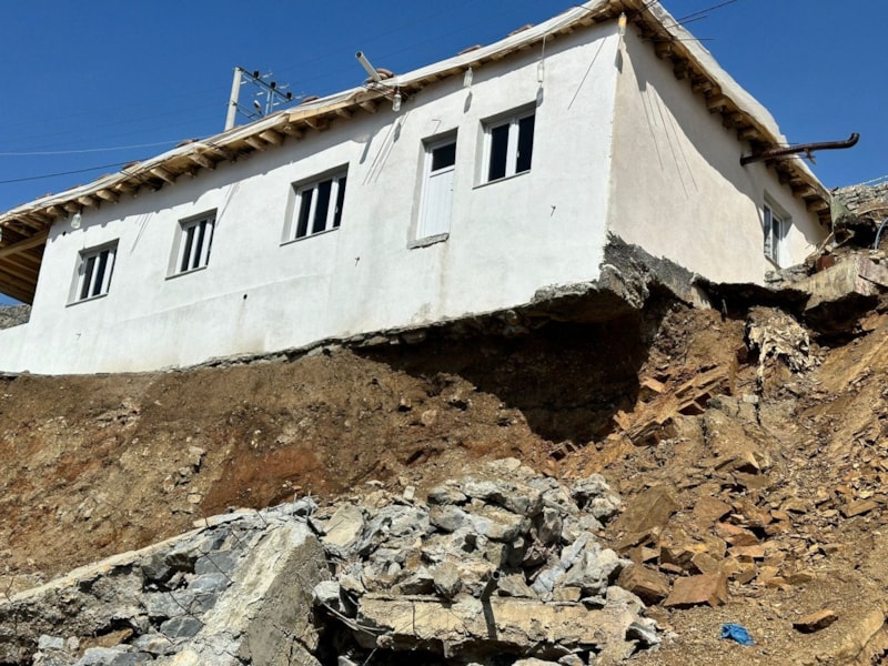 Şırnak’ta yağış nedeniyle istinat duvarı çökünce evin temeli ortaya çıktı