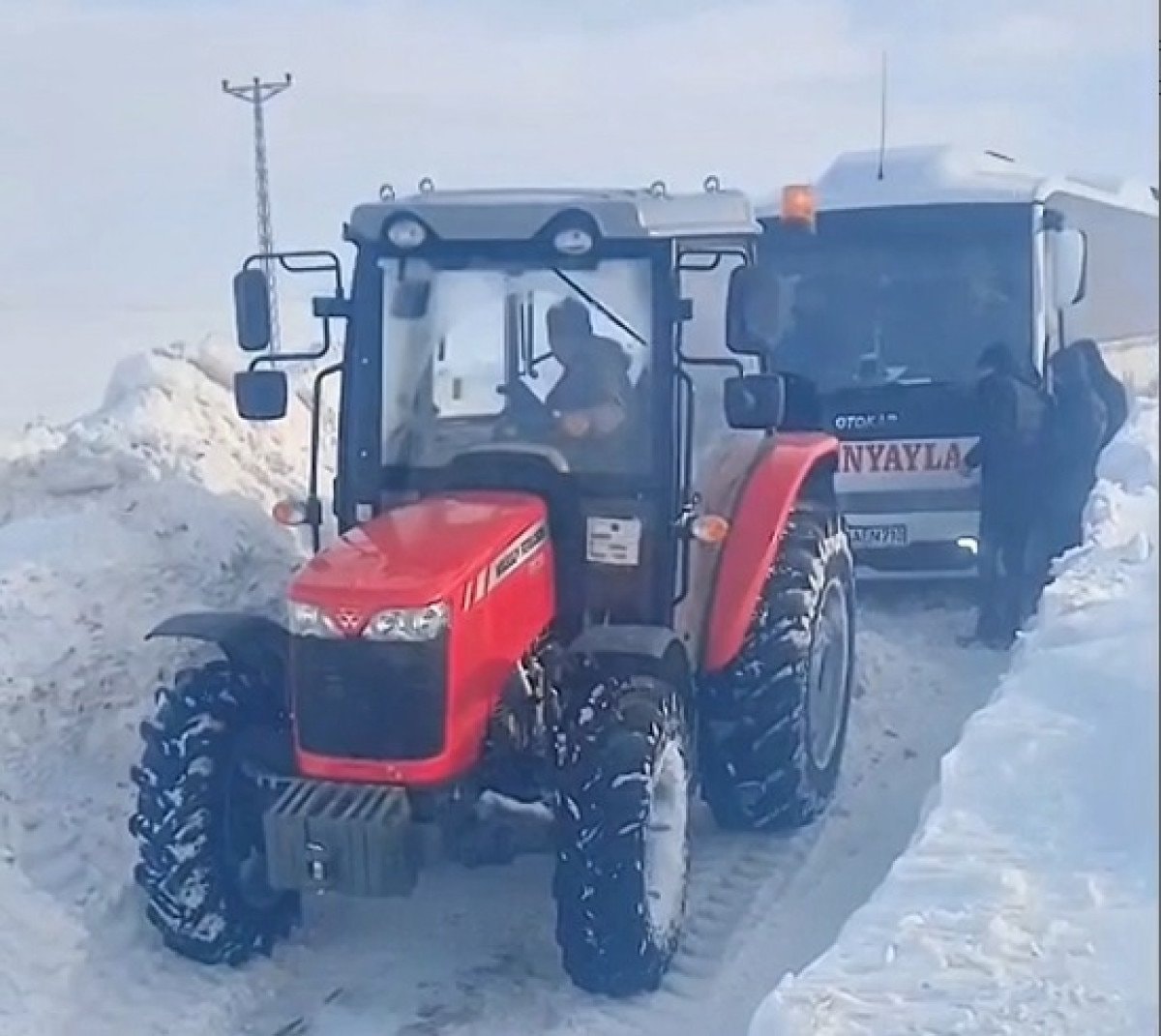 Sivas’ta karda mahsur midibüstekilerin yardımına köylüler koştu