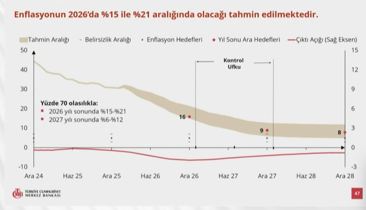Merkez Bankası’nın hazırlayıp, sunduğu enflasyon raporunda, 2026, 2027 ve 2028 yıl sonu enflasyon beklentileri belli oldu.
