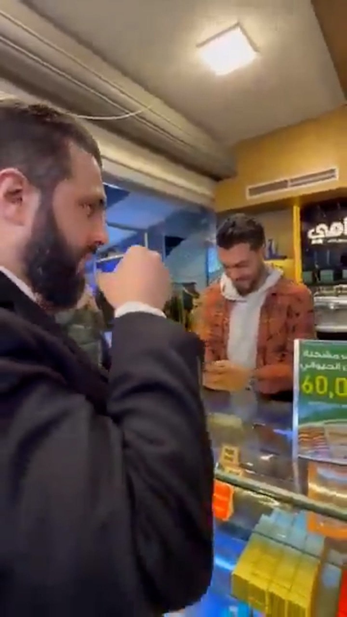 Şara’nın alışveriş yaptığı market çalışanı Heysem Hayek, Cumhurbaşkanı Şara’nın dükkanına gelerek bisküvi aldığını söyledi.