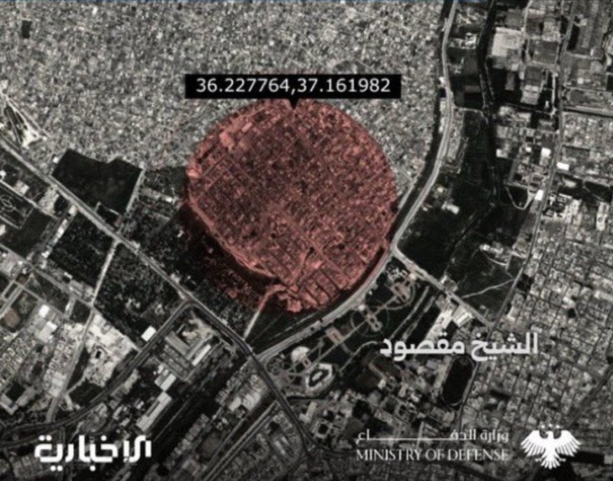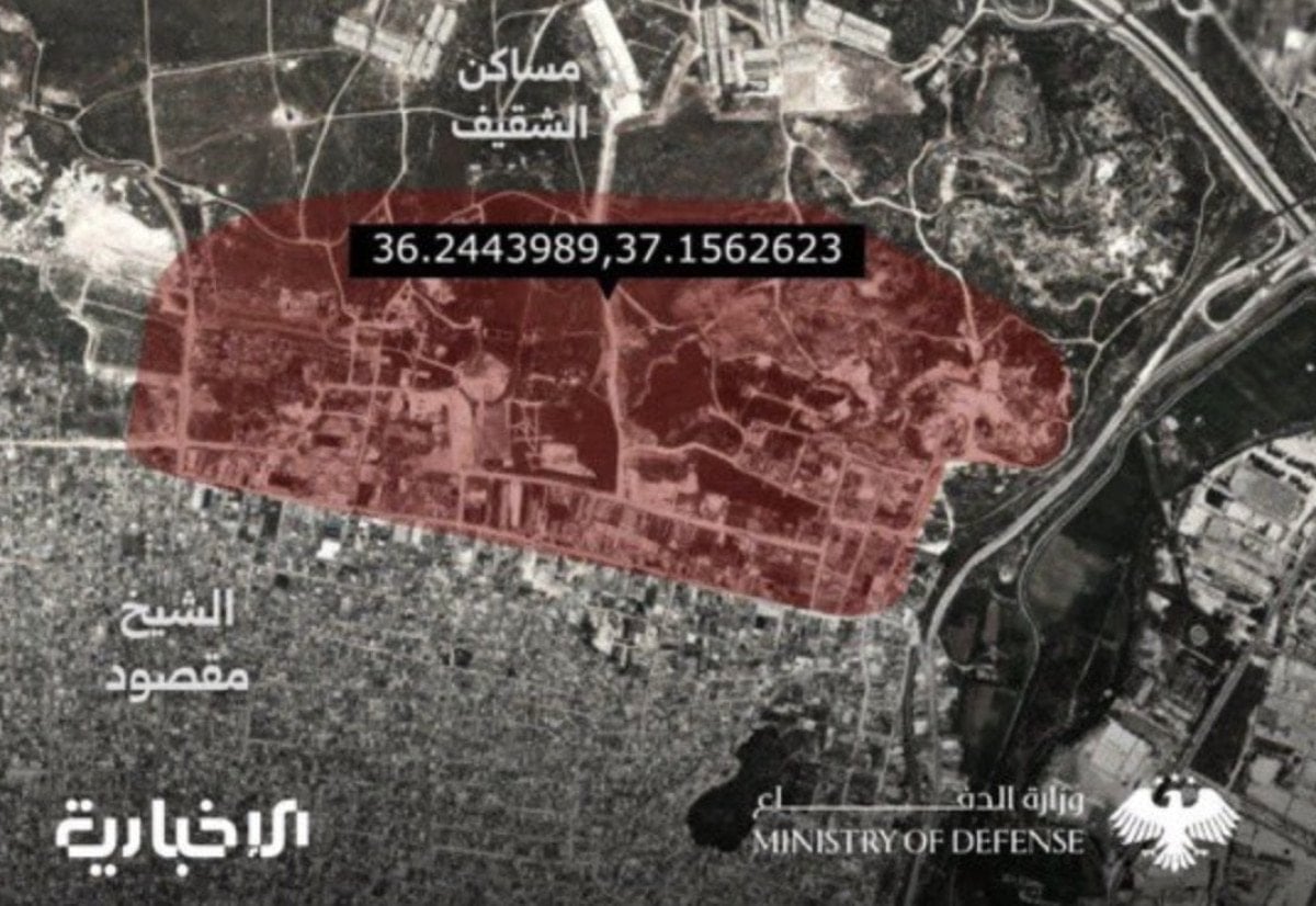 Açıklamada, Halep’in Şeyh Maksut Mahallesi’nde vurulacak noktaları gösteren bir harita yayınlandı.