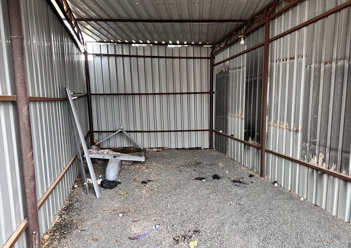 Kilisenin bodrum katında patlamaya hazır bombalarla teçhiz edilmiş dronlar, montajlanmak üzere getirilmiş dron parçaları ve çeşitli bomba düzenekleri kameraya yansıdı.