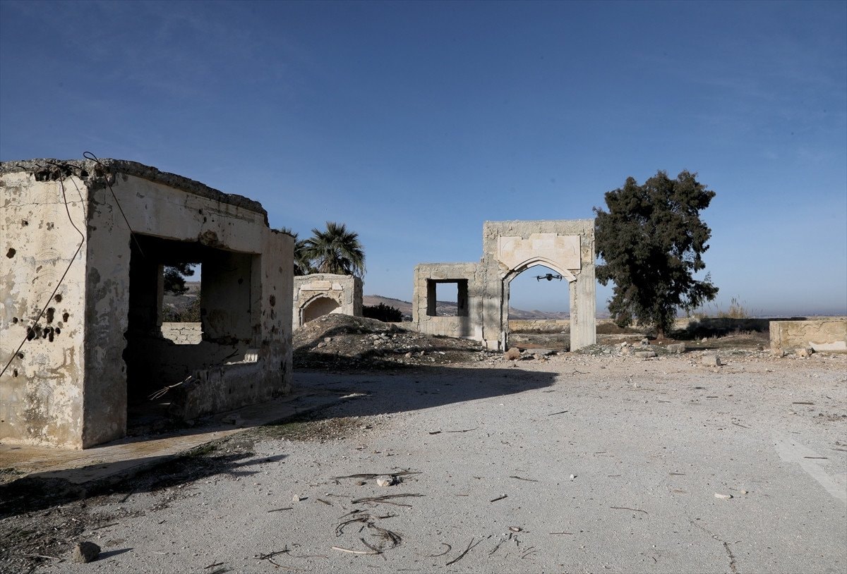 Suriye ordusunun terör örgütü PKK/SDG’den kurtardığı Karakozak köyü mevkisindeki Süleymah Şah Türbesi havadan görüntüledi.