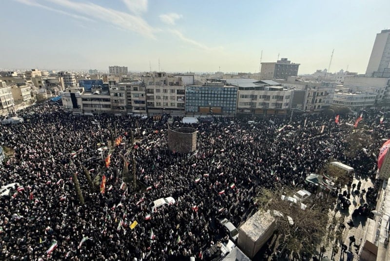 Medyaya yansıyan görüntülerde, Tahran’ın merkez meydanını tamamen dolduran kalabalık İran halkı yer aldı.