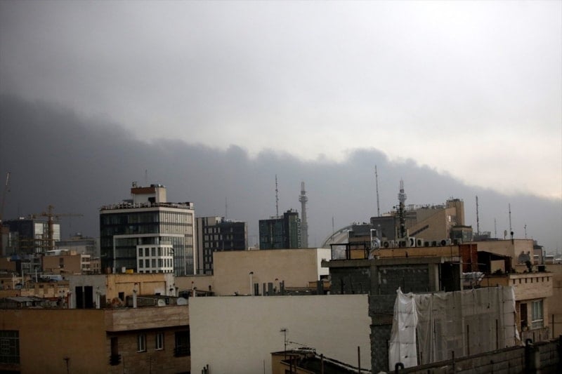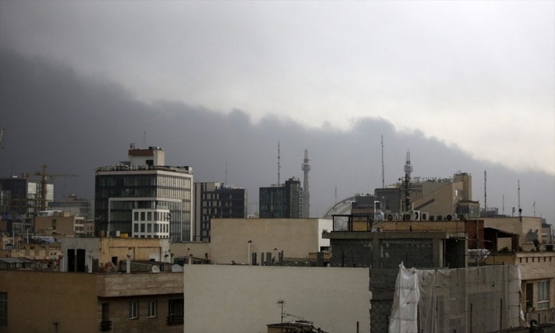 ABD ve İsrail’in İran’ın başkenti Tahran ve çevresindeki petrol depolarına düzenlediği saldırıların ardından kentte, gökyüzü yoğun dumanla kaplandı.