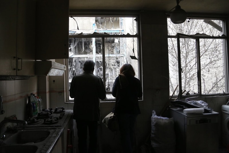 Evleri hasar alan İranlılar, bir yandan sağlam kalan eşyalarını kurtarmaya çalışırken bir yandan da geceyi geçirebilecekleri yer arayışında.