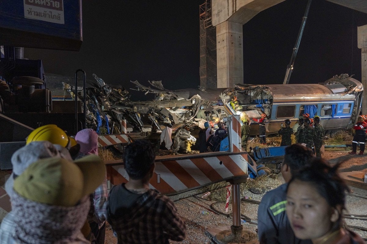 Tayland’da üzerine vinç düşen tren devrildi: 32 ölü