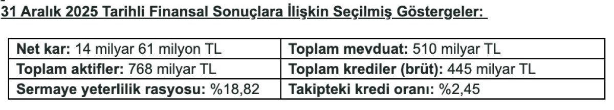 31 Aralık 2025 tarihi itibarıyla TEB’in aktif toplamı 768 milyar TL olurken, net kârı 14 milyar 61 milyon TL olarak gerçekleşti. TEB’in ekonomiye ve müşterilerine sağladığı desteğin en önemli göstergesi olan kredileri ise toplam aktiflerinin yüzde 58’ini oluşturdu.