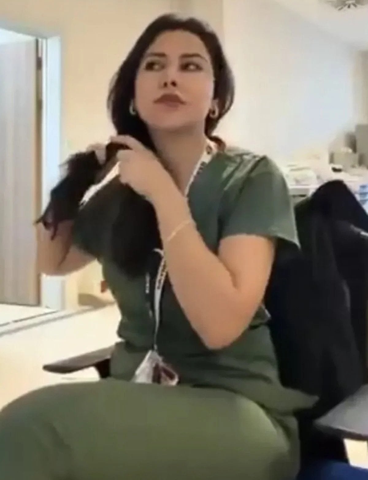 Sağlık personeli, saçlarını ördüğü videoyu sosyal medyada paylaştı.