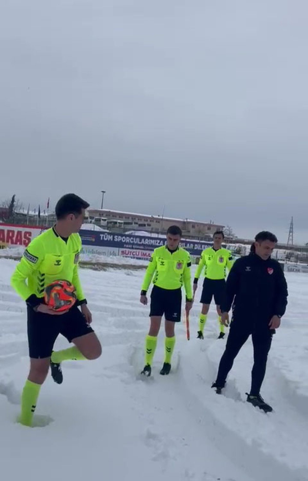 Hakemler karla kaplı sahada top ile kontrol yapıp, maçın oynanamayacağını bildirdi ve karşılaşma ertelendi.