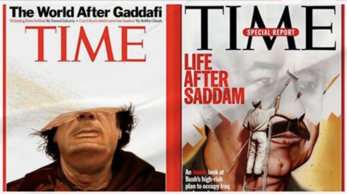 Dergi, 2003 yılında ABD’nin Irak işgalinden hemen önce Saddam Hüseyin’i kapağına taşıyarak “Saddam’dan Sonra Hayat” başlığını kullanırken, 2011’de ise Libya lideri Muammer Kaddafi’yi yarı silinmiş bir portreyle “Kaddafi’den Sonra Dünya” ifadesiyle okuyucuları ile paylaşmıştı.