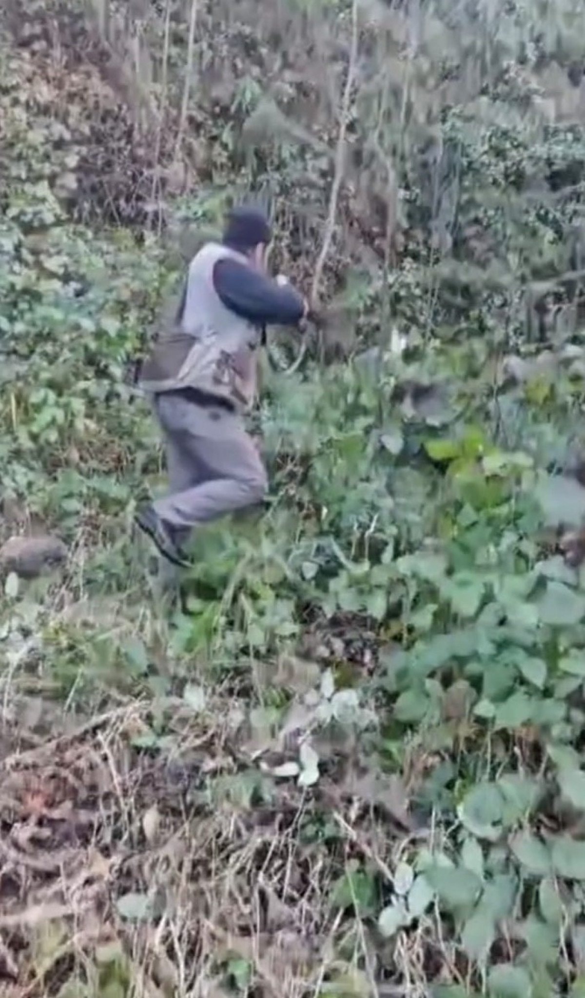 O anlar avcılarda büyük paniğe neden olurken, avcıların hızlı müdahalesiyle yaban domuzu vurularak etkisiz hale getirildi.