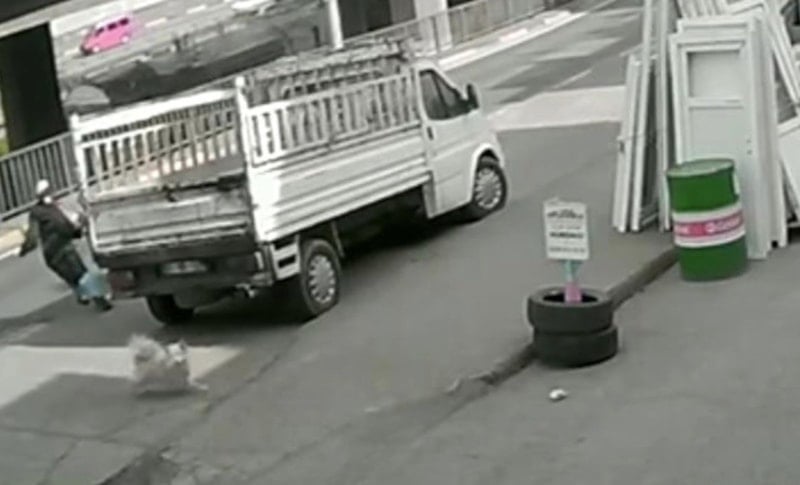 Görüntülerde; Cennet Nesibe Gül’ün köpeğin saldırısından kurtulmak için yola yöneldiği, bu sırada otobüsün kendisine çarptığı, çevredekilerin de yardıma koştuğu anlar yer aldı.