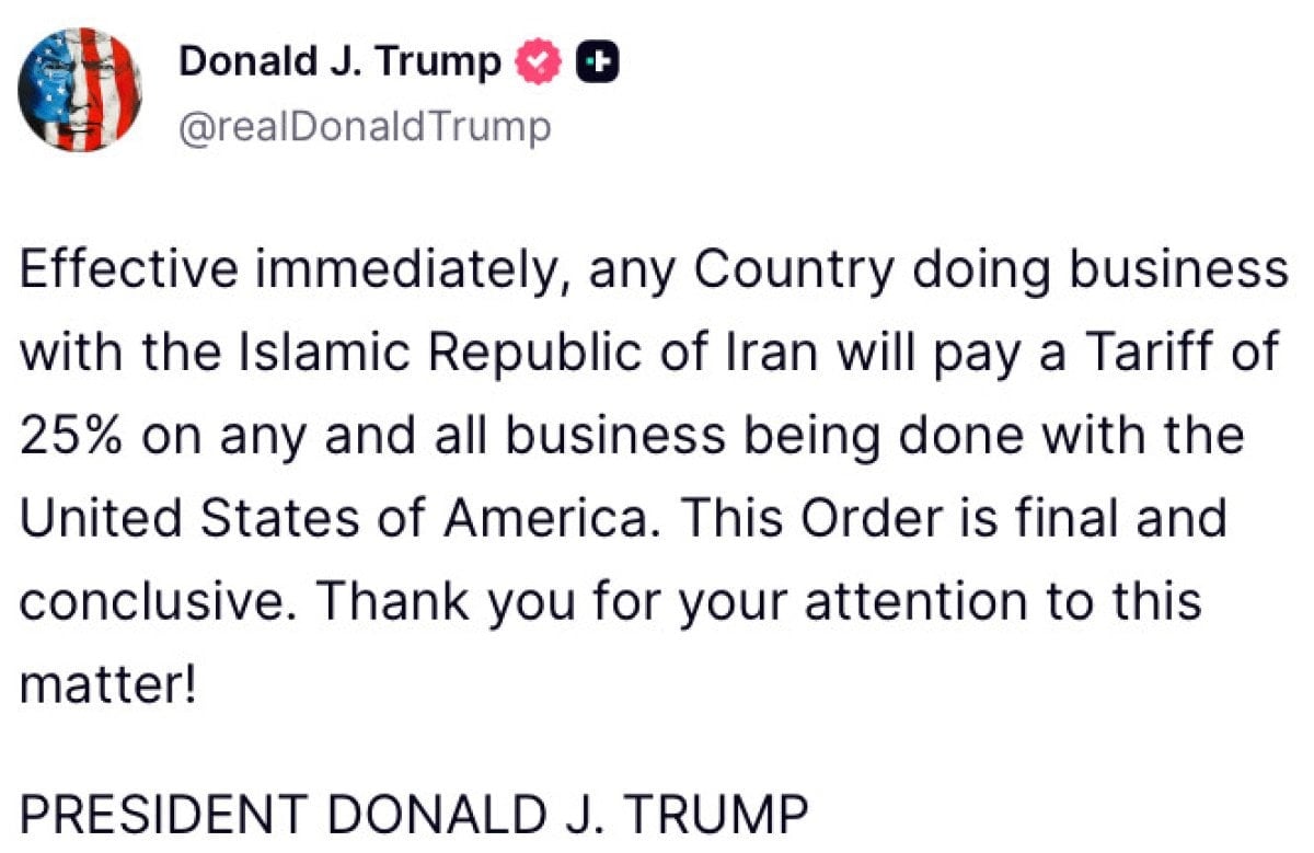 ABD Başkanı Donald Trump, İran ile iş yapan ülkelerin, ABD ile ticaretlerinde yüzde 25 oranında gümrük vergisi ödeyeceğini duyurdu.