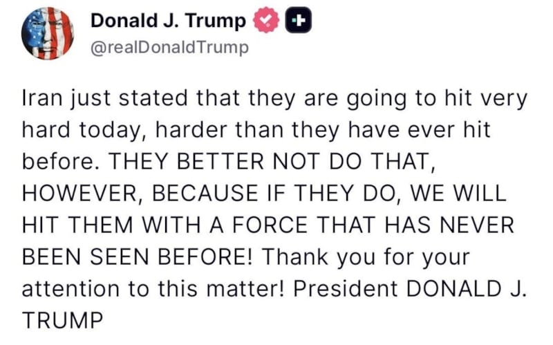 ABD Başkanı Donald Trump, sosyal medya platformundan yaptığı açıklamada, İran’ın ABD’yi daha önce hiç yapmadığı kadar güçlü şekilde vurmakla tehdit ettiğini belirterek, “Bunu yapmasalar iyi olur. Çünkü yaparlarsa onları daha önce hiç görülmemiş bir güçle vururuz.” ifadelerinde bulundu.