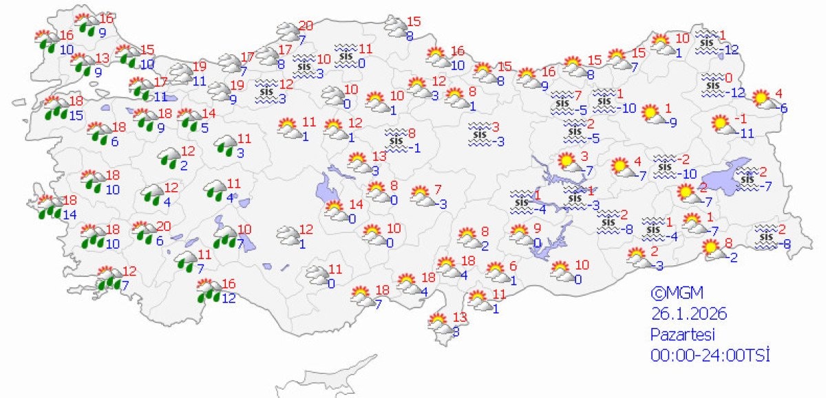 Batı bölgelerde 10-16 derece aralığında daha ılıman, ancak yüksek kesimlerde kar bekleniyor.