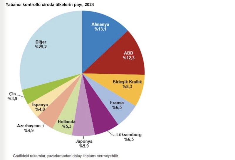 Yabancı kontrollü 11 bin 86 girişimden, 1309’u Almanya tarafından kontrol edildi. Bu girişimlerin 2024’te elde ettiği cironun toplam yabancı kontrollü cirodaki payı, yüzde 13,1 olarak hesaplandı.