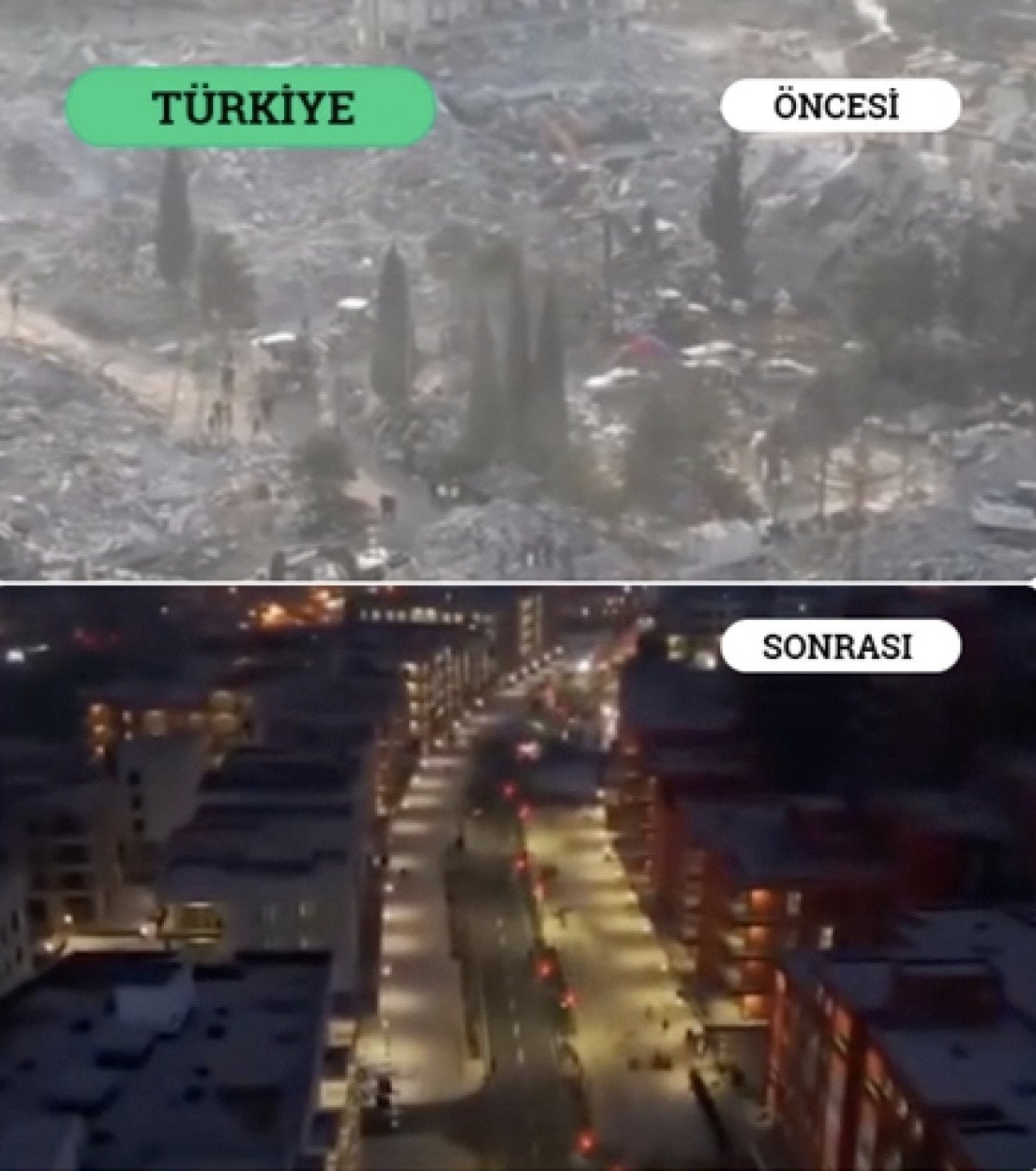 Videoda ayrıca, 6 Şubat 2023’te Türkiye’de meydana gelen depremlerde 50 binden fazla kişinin hayatını kaybettiği, kentlerdeki yapıların büyük bölümünün yıkılmasına karşın iki yıl içinde 455 bin yeni konutun inşa edildiği ve fiilen yeni şehirler kurulduğu ifade edildi.
