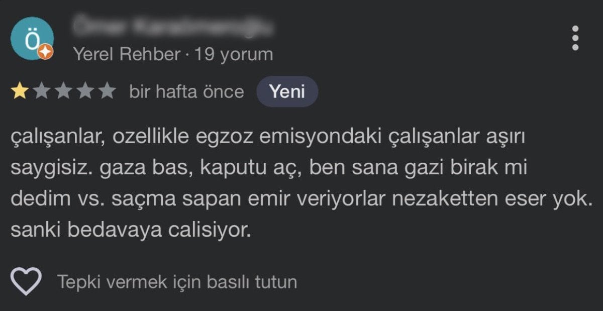 Çalışanlar, özellikle egzoz emisyondaki çalışanlar aşırı saygısız. Gaza bas, kaputu aç, ben sana gazi bırak mı dedim vs. saçma sapan emir veriyorlar nezaketten eser yok. Sanki bedava çalışıyor.