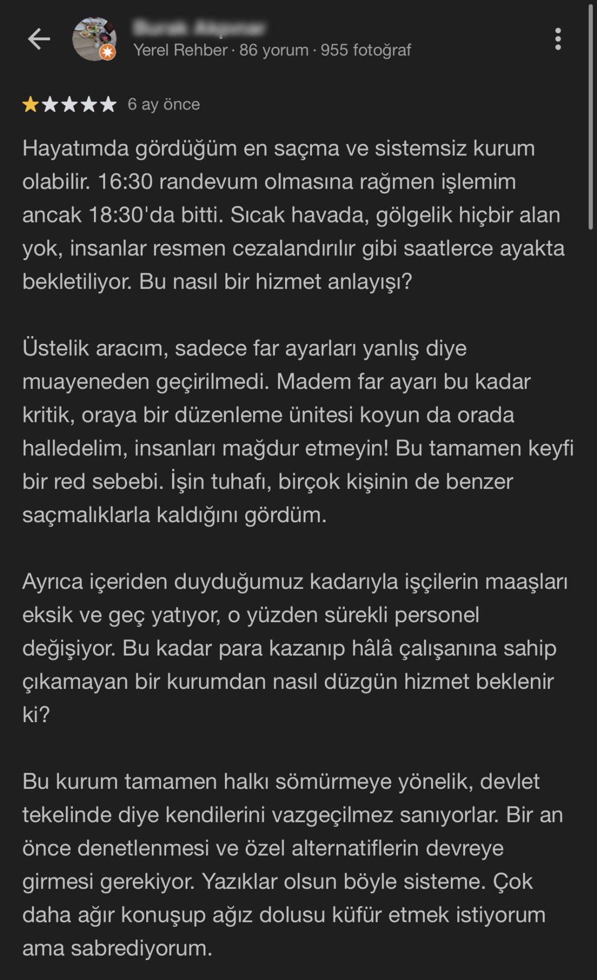 Sıra takibi, bilgilendirme veya yönlendirme konusunda kimse yardımcı olmuyor. Vatandaş olarak zaten mecbur olduğumuz bir hizmeti bu kadar stresli ve yorucu hale getirmeleri üzücü.