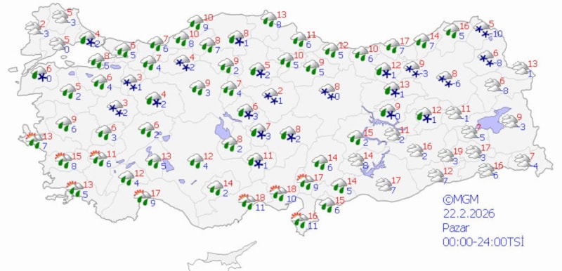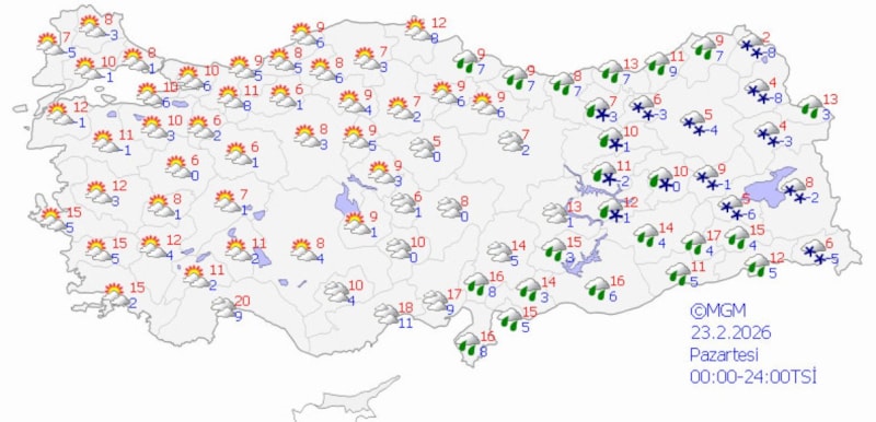 Sıcaklıklar batıda 5-15 derece, doğuda ise 0-10 civarında seyredecek.
