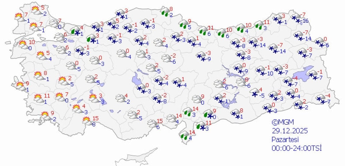Sıcaklıkların çoğu ilde 0-10 derece bandında olacağı ve yüksek kesimlerde -5 dereceye kadar düşüş görüleceği öngörülüyor.
