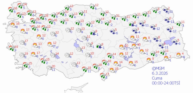 Cuma günü kar yağışının ve soğuk havanın iç ve doğu bölgelerde devam etmesi, batı kesimlerde sıcaklıkların artması bekleniyor.