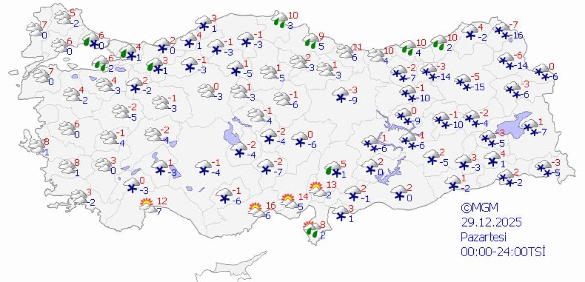 İç ve doğu kesimlerde yaygın kar yağışı bekleniyor.