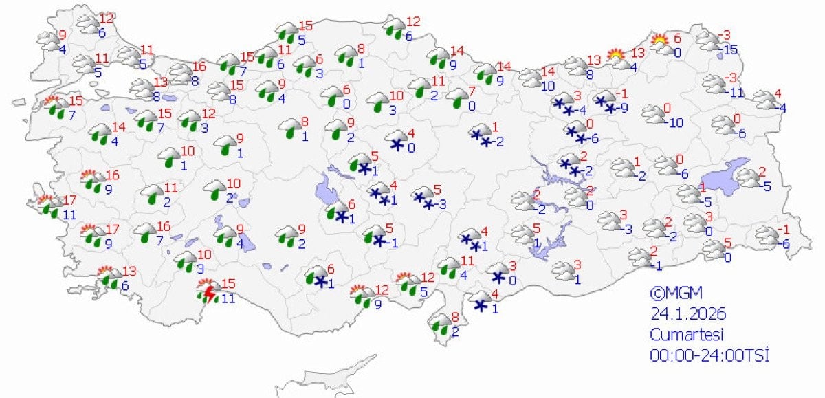 Özellikle Doğu Anadolu, İç Anadolu’nun doğusu, Karadeniz’in iç kesimleri ve Doğu Anadolu’da sıcaklıklar eksi değerlere düşüyor.