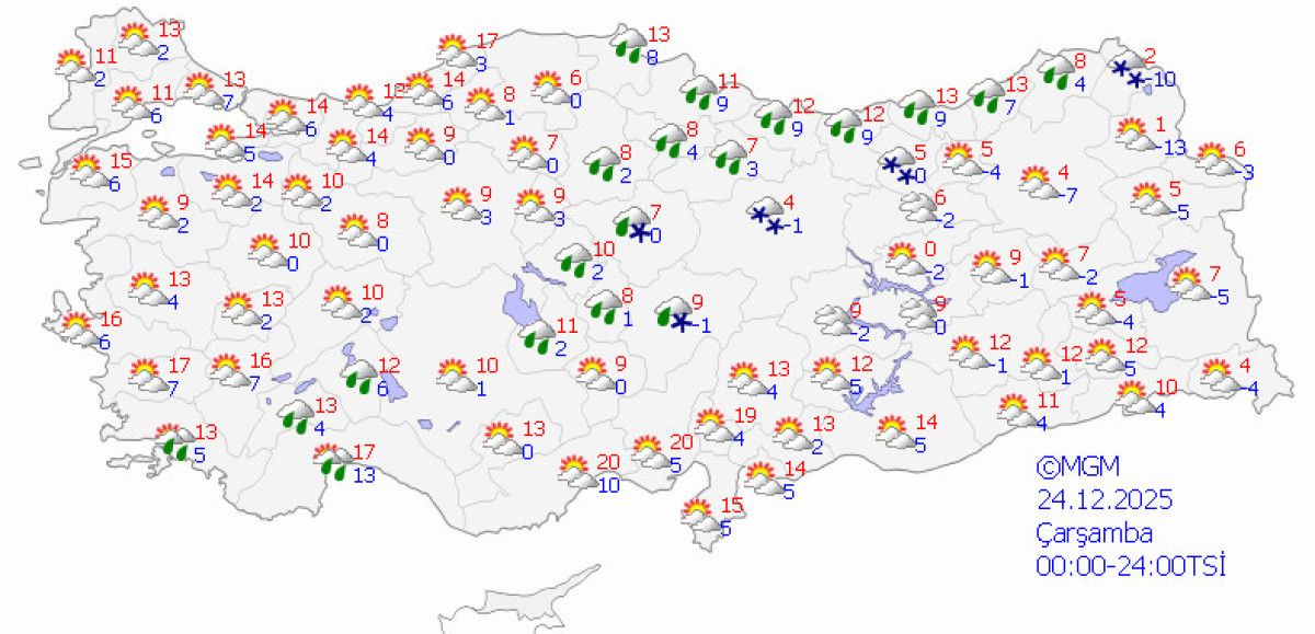 Ülke genelinde parçalı bulutlu bir hava hakim olurken, özellikle iç ve doğu kesimlerde soğuk hava dalgası kendini hissettirecek.