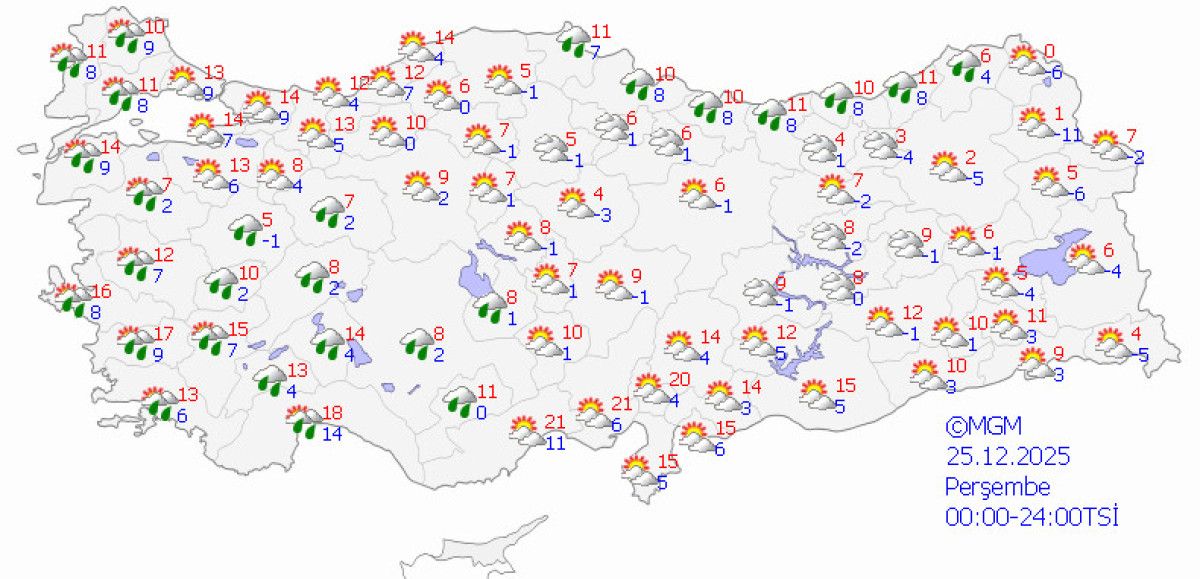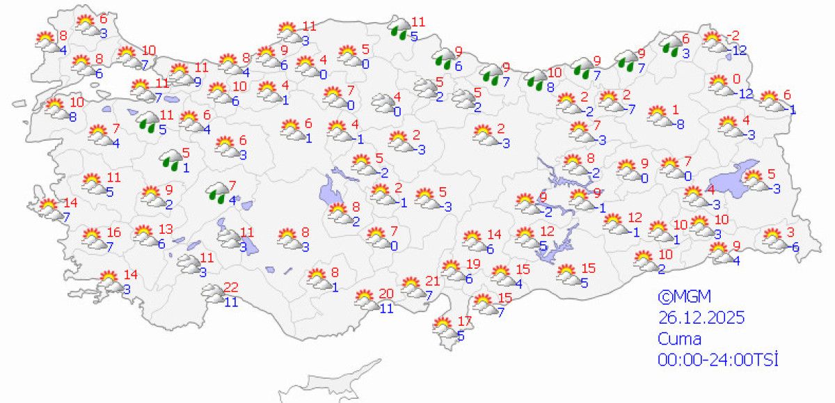 Bugün ülke genelinde hava parçalı ve çok bulutlu geçecek.