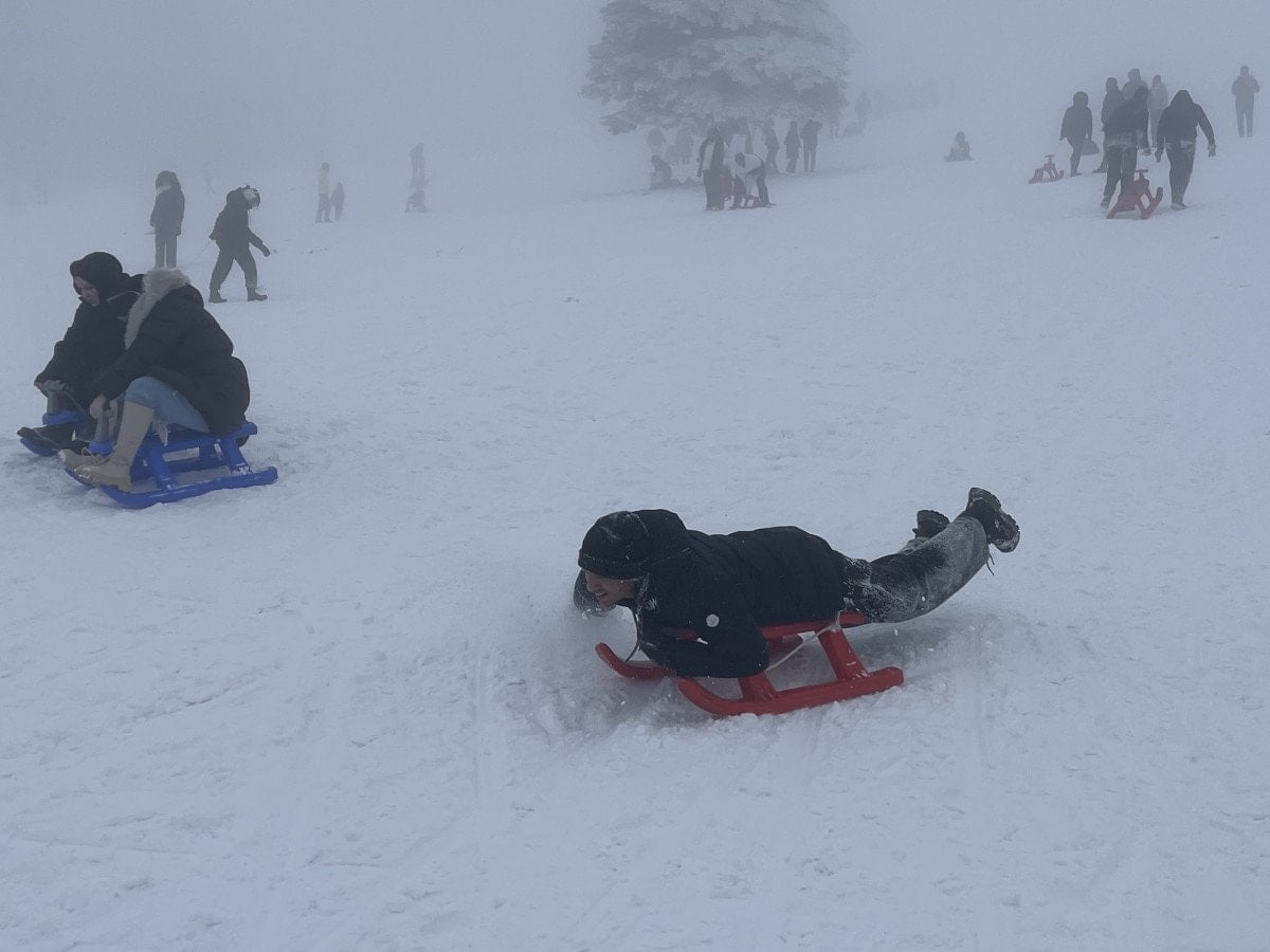 Bursa’nın yanı sıra İstanbul, Kocaeli, Yalova, Balıkesir ve Eskişehir gibi çevre illerden gelen tatilciler, kızak yaparak karın keyfini çıkardı.