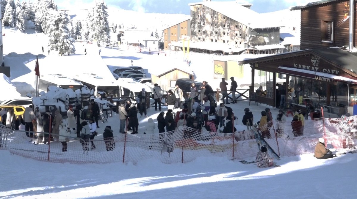 Dakikalarca sıra bekleyen tatilciler zirvede kayak keyfinin yanı sıra ateş başında sucuk ekmek ve salep içerek karın keyfini yaşadı.